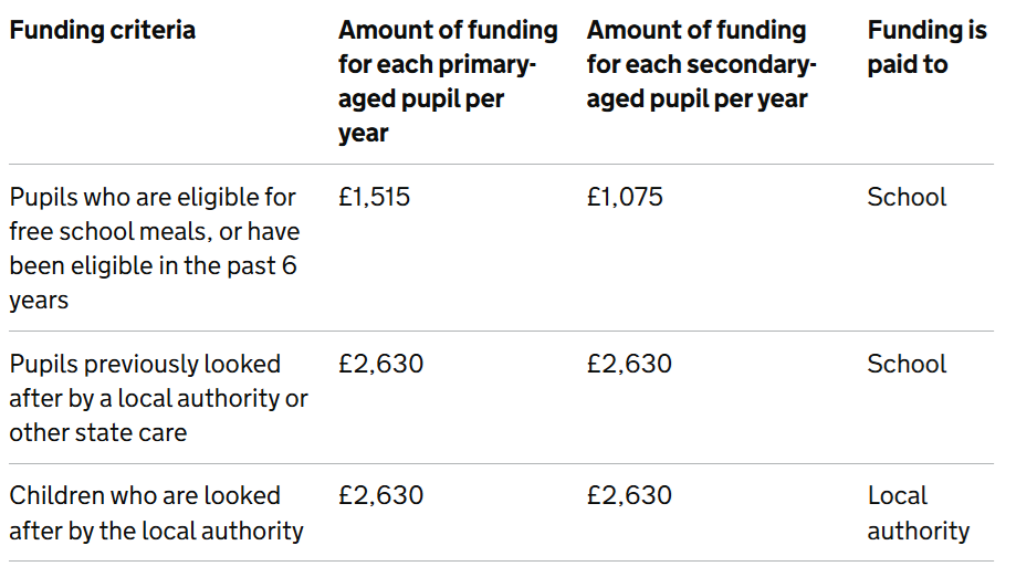 The Pupil Premium grant per pupil rates for the financial year 2025 to 2026 are set out below: