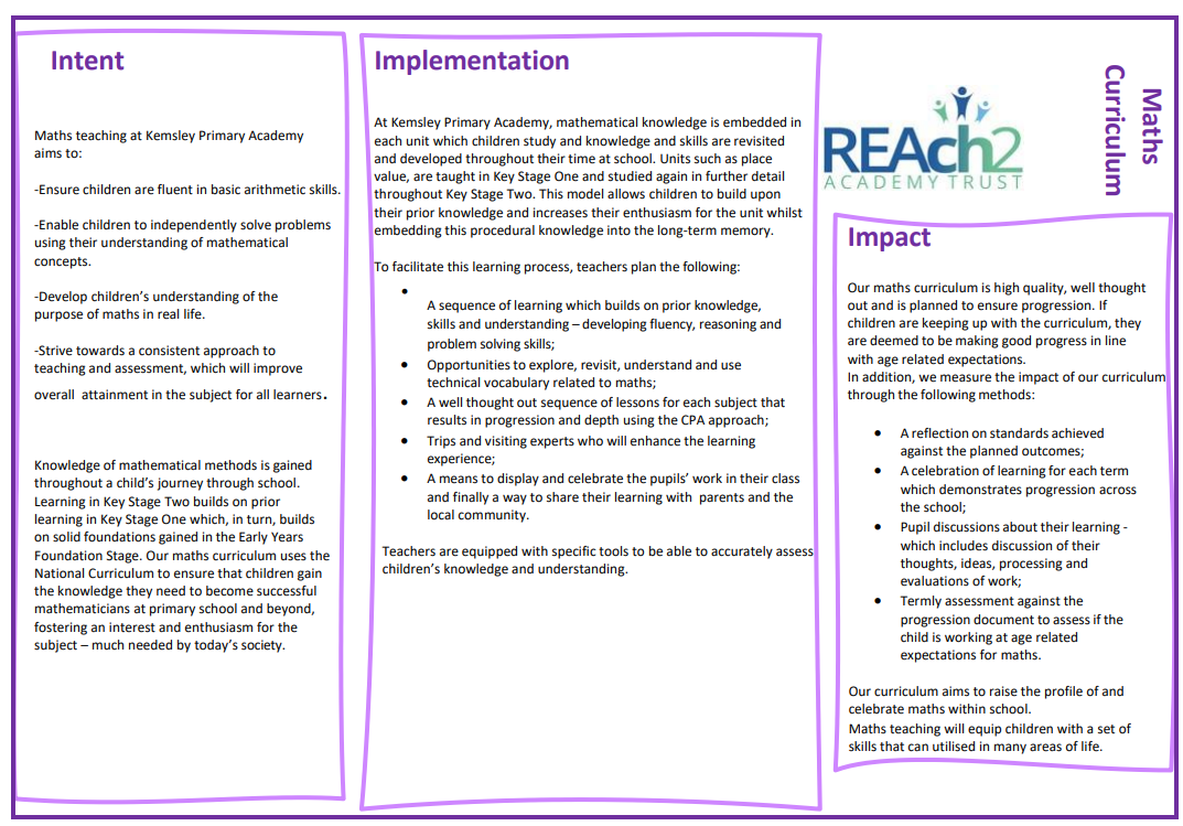 Maths teaching at Kemsley Primary Academy aims to: